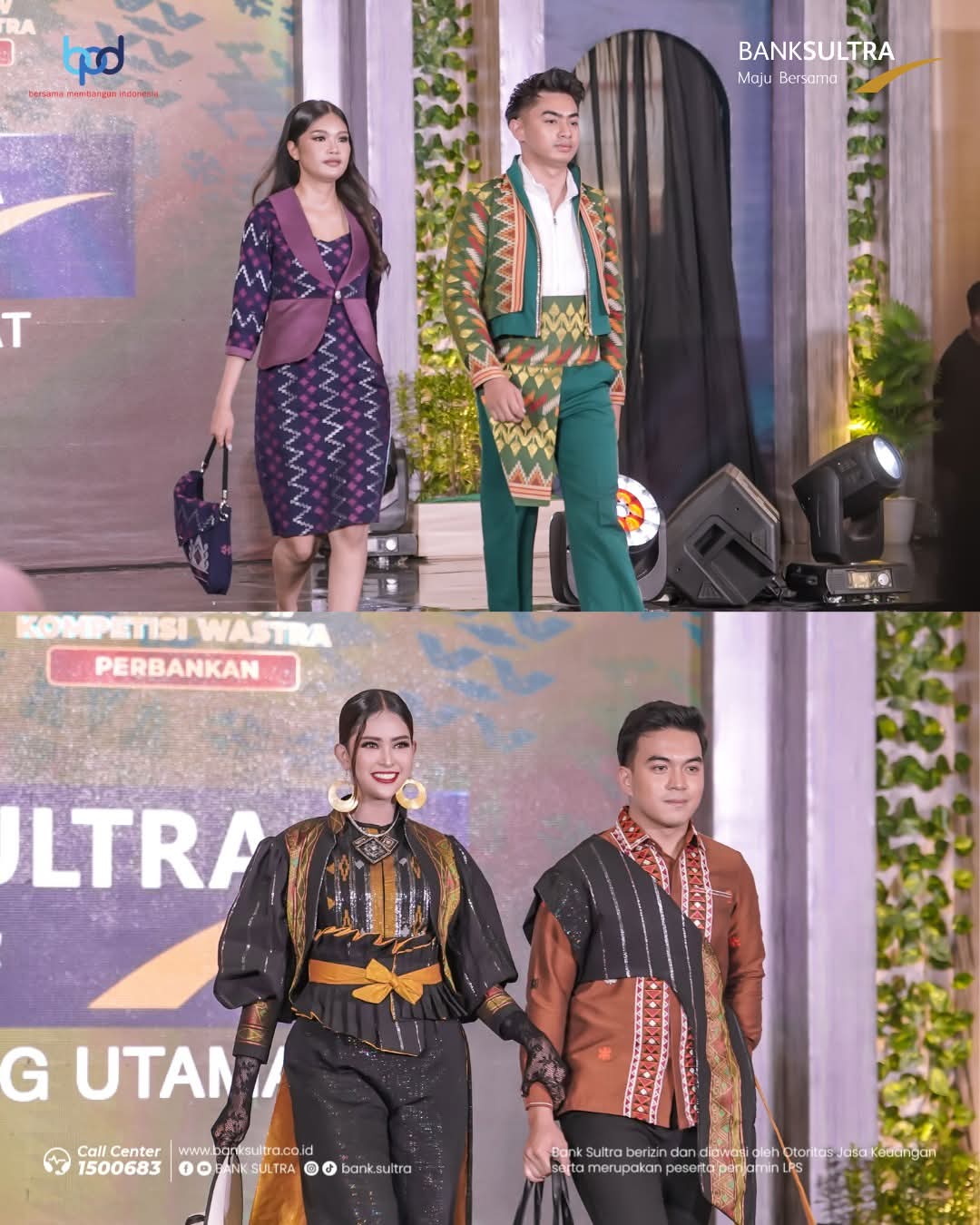 Tak hanya itu, Bank Sultra juga turut menyemarakkan Lomba Fashion Show antar Bank, yang menjadi bagian dari kampanye cinta wastra dan budaya lokal Sulawesi Tenggara. Dalam ajang tersebut, para unsur pimpinan dan staf dari Kantor Pusat maupun Kantor Cabang Utama Bank Sultra tampil memukau dengan balutan busana khas daerah, hingga berhasil meraih Juara Favorit.