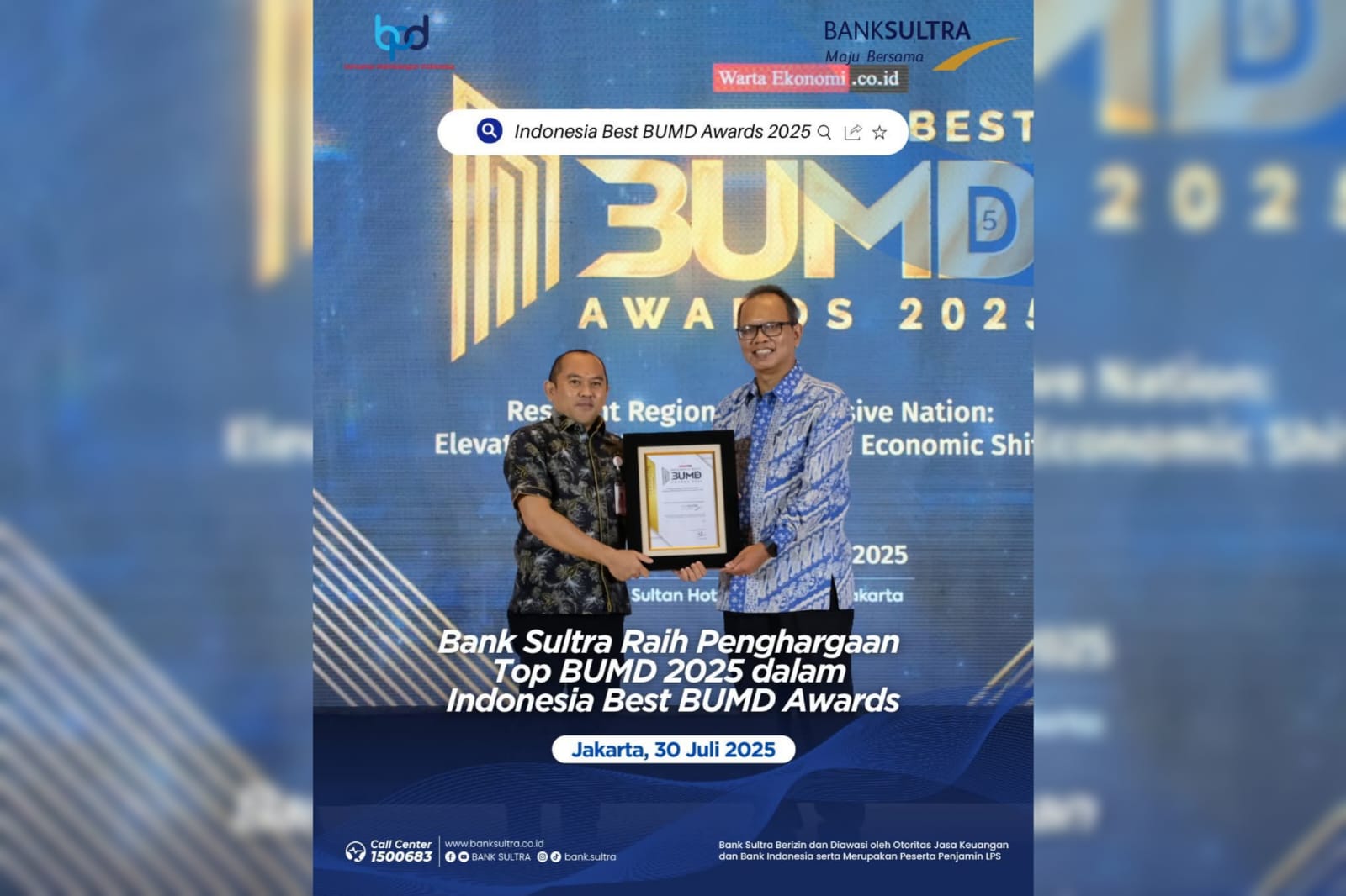 Penghargaan ini diterima langsung oleh Kepala Cabang Bank Sultra Jakarta, Bapak Muh. Darwis Dahlan, dalam seremoni yang digelar pada Rabu, 30 Juli 2025 di Jakarta. Ajang ini diselenggarakan sebagai bentuk apresiasi terhadap BUMD yang telah menunjukkan kinerja unggul, inovatif, serta tata kelola perusahaan yang baik di tengah dinamika ekonomi nasional.