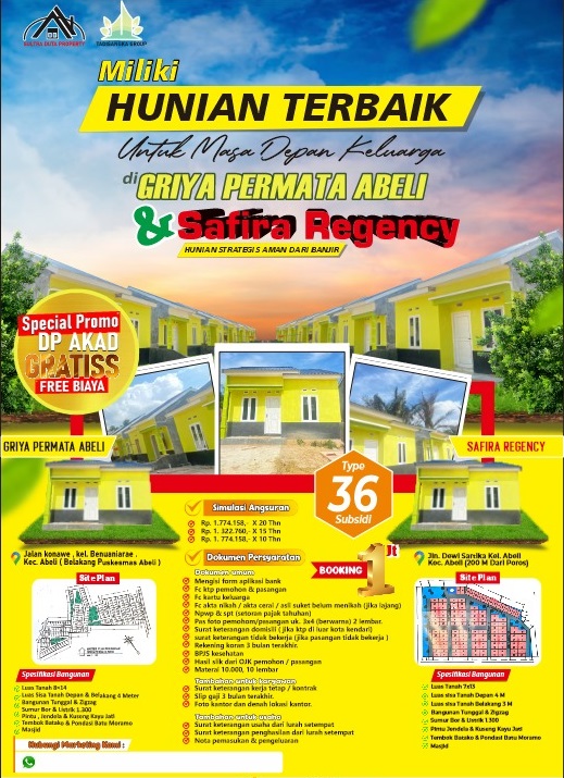 Dengan lokasi yang strategis dan aman dari banjir, serta promo menarik yang ditawarkan, Griya Permata Abeli dan Safira Regency menjadi pilihan tepat bagi keluarga yang menginginkan hunian berkualitas dan nyaman di Kendari. (red/id)