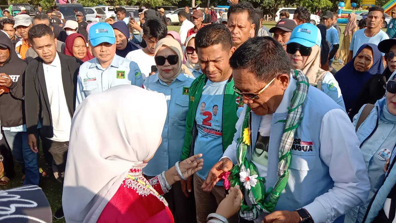 Paslon nomor urut 2 dengan akronim ASR-Hugua itu hadir di lokasi kampanye sekitar pukul 16.00 Wita. Dan disambut dengan pengalungan salt dan tarian adat setempat. Ribuan massa diperkirakan sekitar 2.000 ribu antusias mengikuti jalannya kampanye. (red/id)
