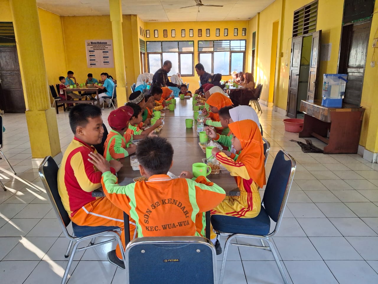 Sebelumnya, pada Rabu (6/11) Pj. Gubernur Sulawesi Tenggara, Komjen Pol Dr. (H.C) Andap Budhi Revianto, S.I.K., M.H., bersama Ketua Tim Komisi II DPR RI, Bahtra Banong, S.PWK., melakukan kunjungan ke SMA Negeri 4 Kendari dalam rangka pelaksanaan uji coba program makan siang bergizi gratis untuk siswa SMA/SMK. (ADV)