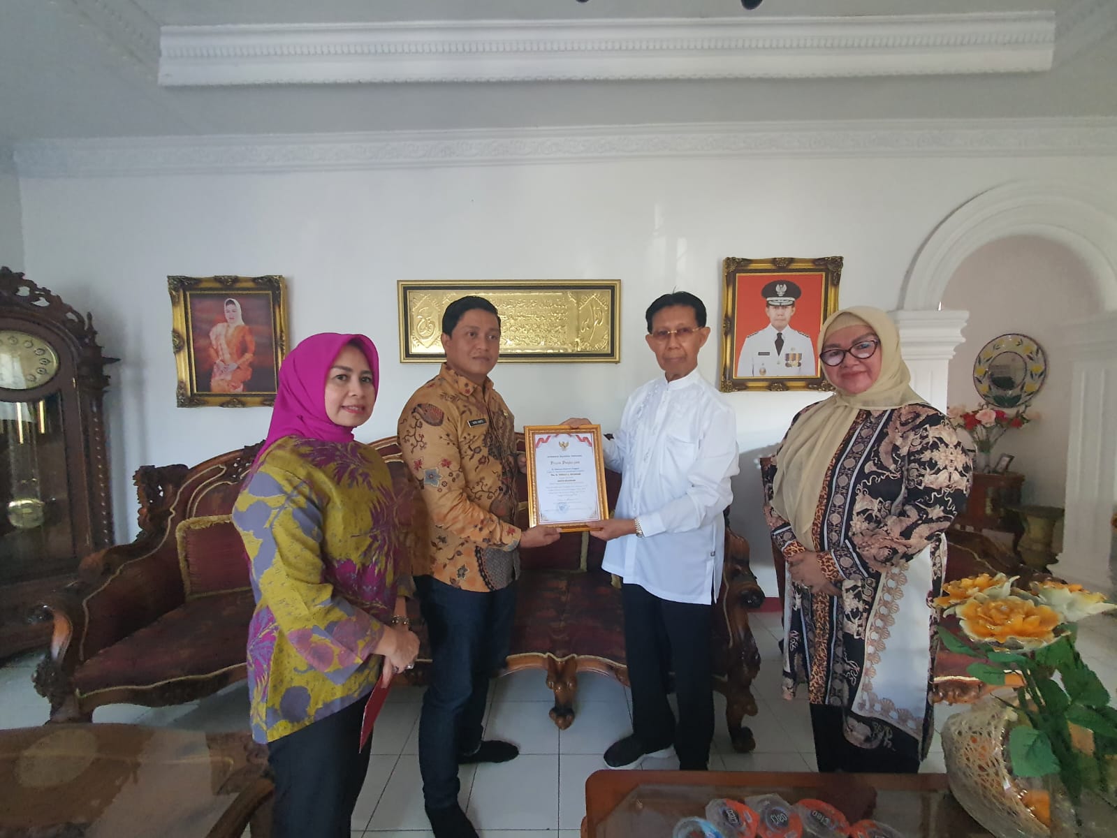 Plt Kepala Dinas Sosial Sultra, Haris Ranto, S.ST, M.Si saat menyerahkan piagam pernghargaan kepada ahli waris Jakob Silondae.