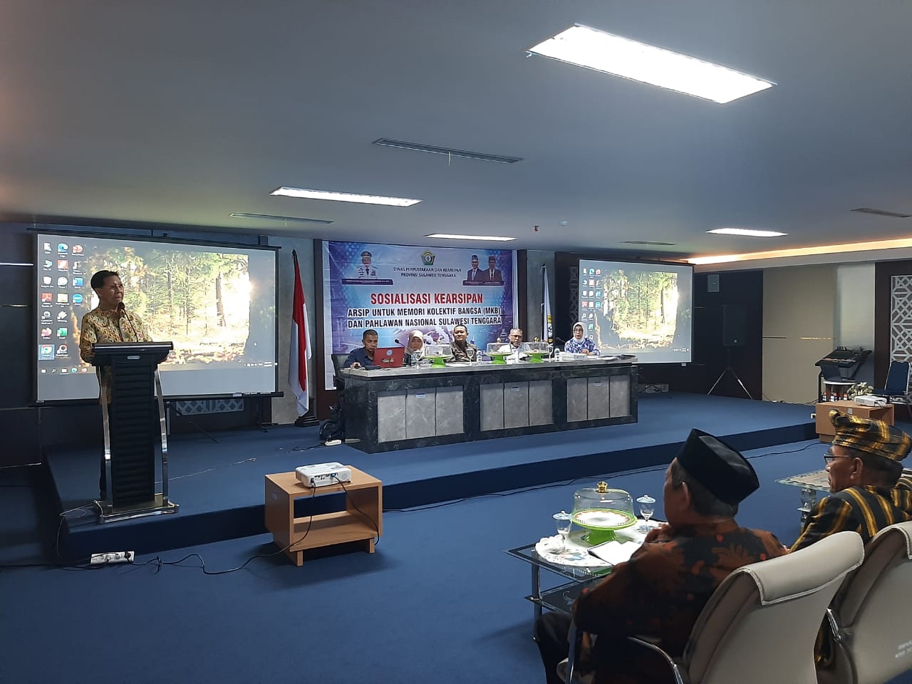 Kegiatan yang dirangkaikan Sosialisasi Kearsipan, Arsip untuk Memori Kolektif Bangsa (MKB) dan Pahlawan Nasional Sulawesi Tenggara berlangsung Aula Dinas Perpustakaan dan Kearsipan Sulawesi Tenggara (Sultra).