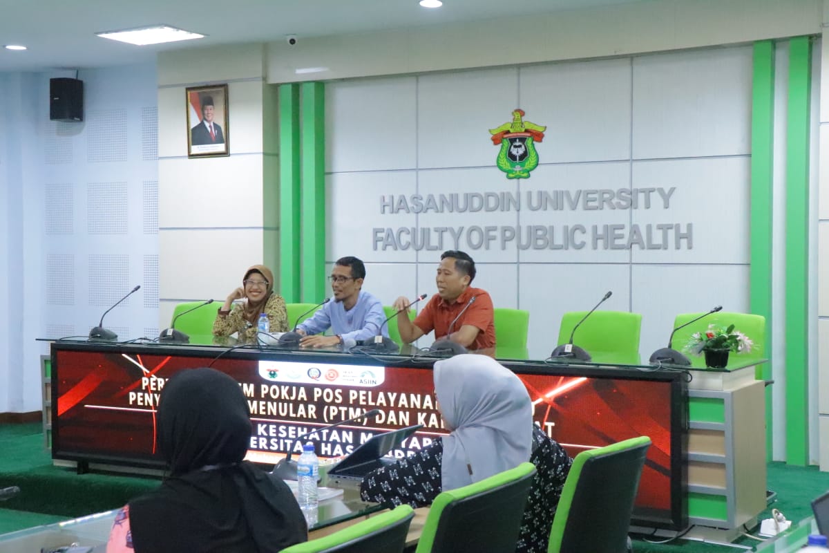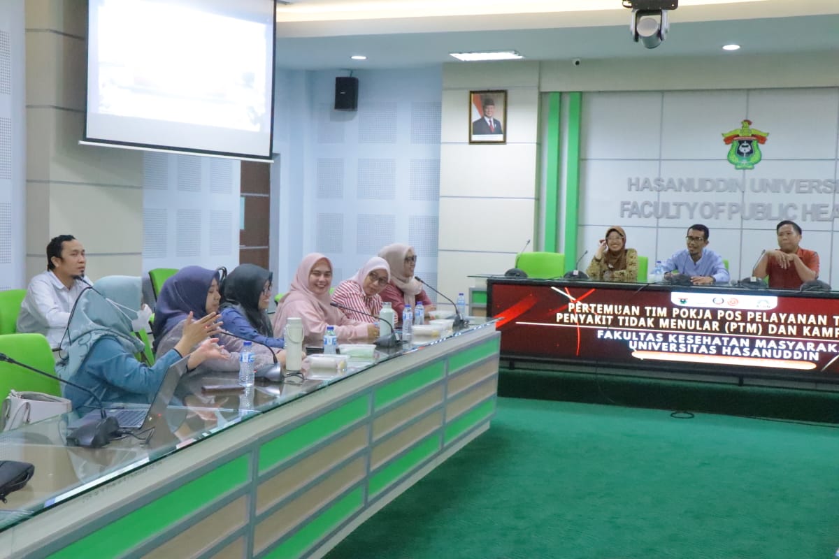 Kegiatan ini berlangsung di Ruang Prof. Nur Nasry Noor, Lantai 2 FKM Unhas, dan dihadiri oleh Tim Pokja Pos Pelayanan Terpadu Penyakit Tidak Menular (PTM) serta Tim Kampus Sehat FKM Unhas.