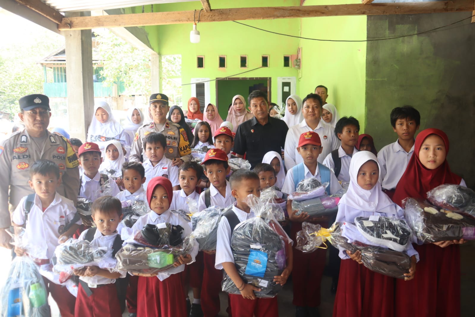 Hadir untuk Negeri, Polri Salurkan Bantuan Seragam dan Perlengkapan Sekolah bagi Siswa di Kolaka.