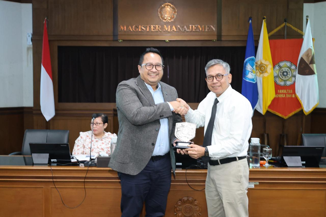 Ia menyampaikan bahwa kehadiran praktisi dalam perkuliahan memberikan kesempatan bagi mahasiswa untuk memperoleh first hand experience terkait implementasi Business Ethics for Sustainability di dunia industri. “Terima kasih atas perkenan Harwan hadir dan mengisi kelas kali ini, menjadi bekal penting bagi Mahasiswa UGM karena berkesempatan untuk bertemu dalam satu forum Business Ethics for Sustainability, di mana mahasiswa dapat belajar secara langsung dari praktik yang dilakukan oleh Jasa Raharja,” ujarnya.