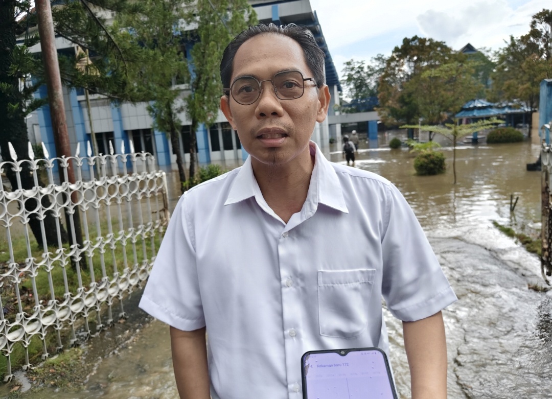 “Waktu itu kami sedang rapat di kantor. Biasanya kalau hujan deras tidak ada masalah. Tapi setelah rapat selesai dan kami turun, tiba-tiba air sudah masuk ke dalam kantor,” ujar Andi Syahril saat ditemuai di tempat kejadian, Jumat (10/4/2026).