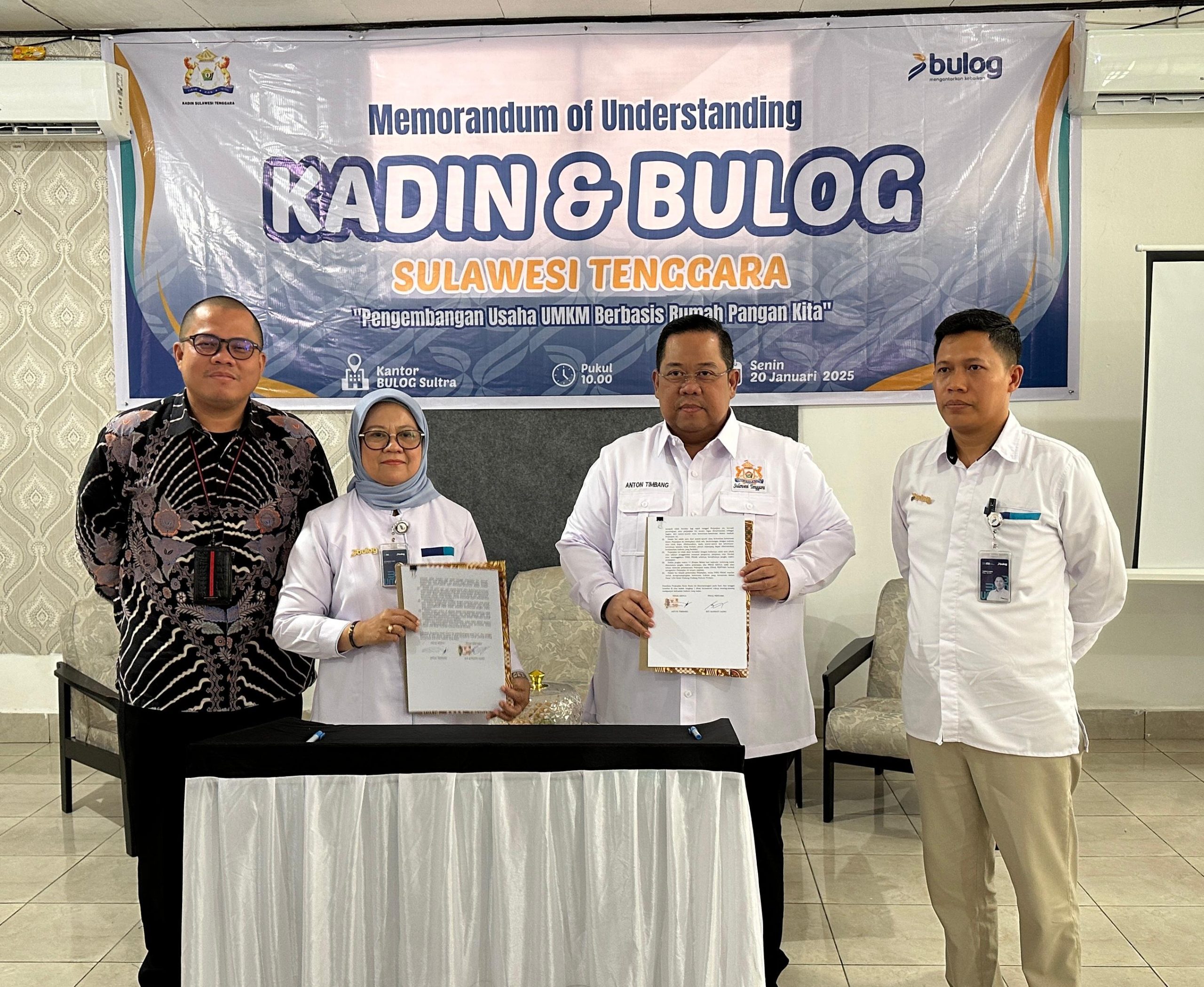 KORANHeadline.com, KENDARI – Ketua Kadin Sulawesi Tenggara (Sultra), Anton Timbang, dan Kepala Bulog Sultra, Sitti Mardati Saing, menandatangani nota kesepahaman (MoU) untuk pengembangan Usaha Mikro, Kecil dan Menengah (UMKM) berbasis Rumah Pangan Kita (RPK) di Kantor Bulog Sultra, Senin (20/01/2025).