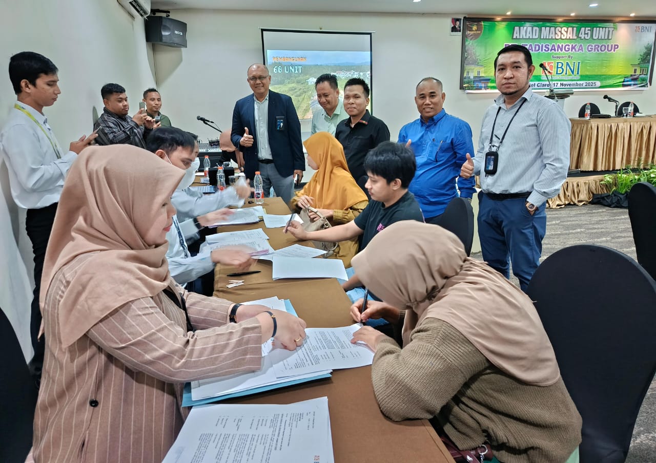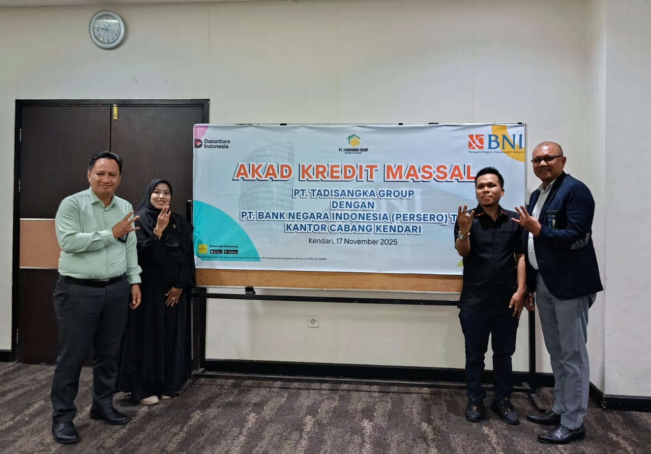 KORANHeadline.com, KENDARI – PT Tadisangka Grup bersama Bank Negara Indonesia (BNI) Cabang Kendari sukses menggelar akad massal Kredit Pemilikan Rumah (KPR) subsidi bagi masyarakat, pada Senin (17/11), bertempat di Claro Hotel Kendari.