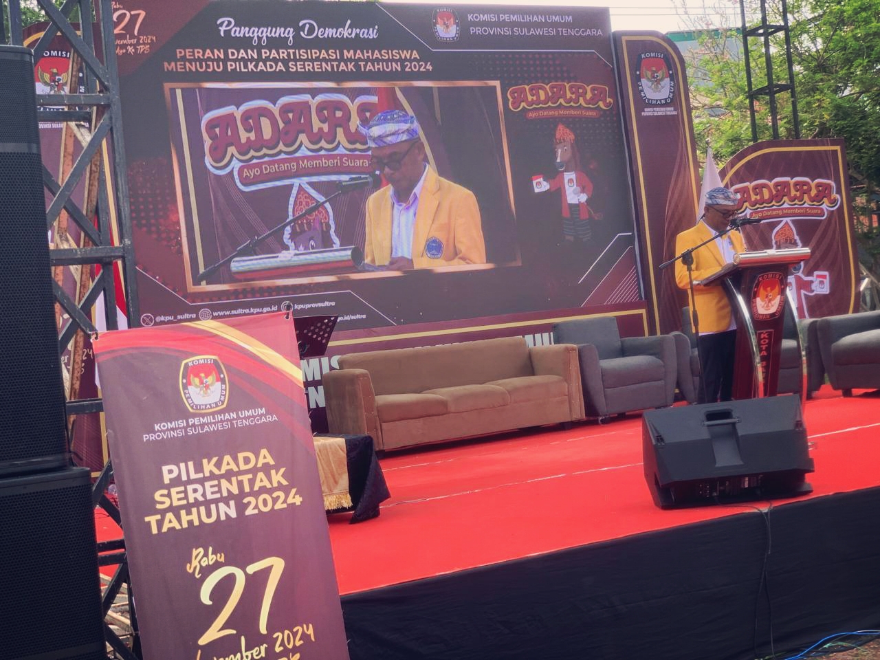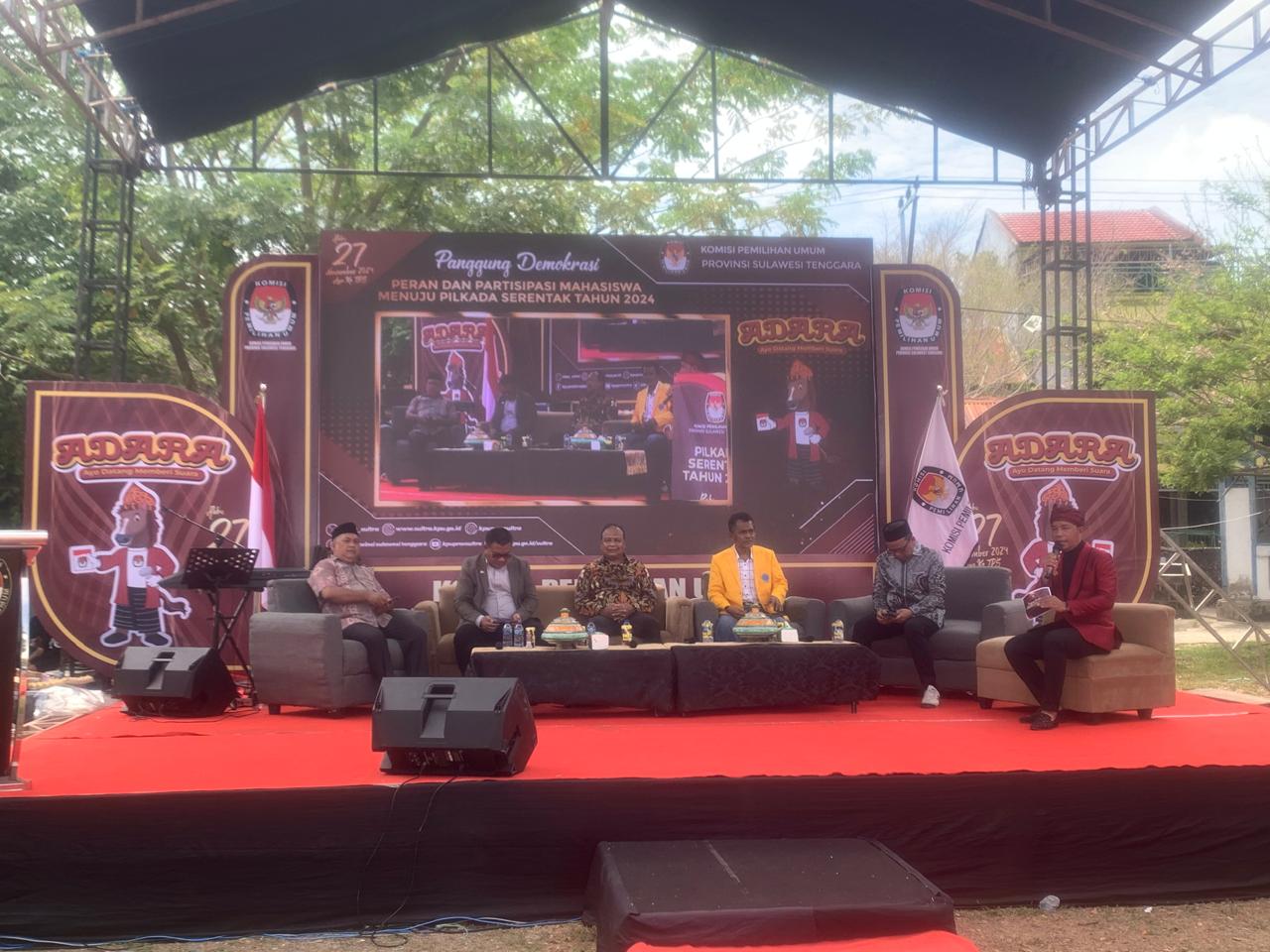 Sementara itu, Wakil Rektor III La Baride ST MT mengungkapkan bahwa “Panggung Demokrasi yang diinisiasi KPU merupakan bentu sosialisasi penyelenggaraan Pilkada Serentak kepada masyarakat diantaranya kepada para mahasiswa. Menurutnya, mahasiswa memiliki peranan penting dalam kesuksesan penyelenggaraan Pilkada.