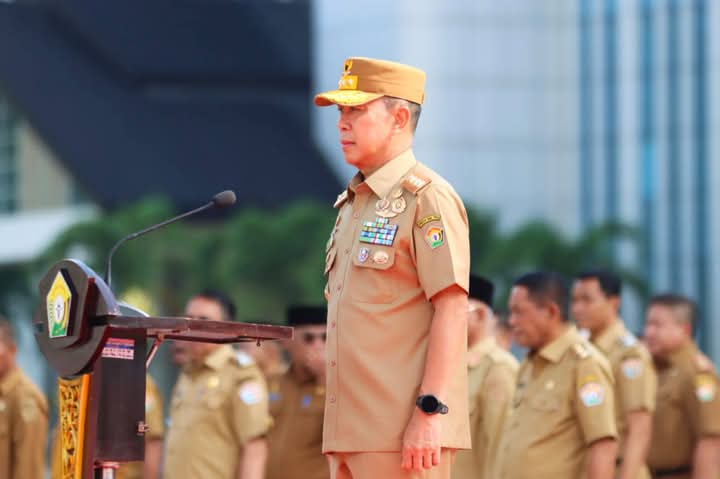 KORANHeadline.com, KENDARI – Gubernur Sulawesi Tenggara (Sultra), Mayjen TNI (Purn) Andi Sumangerukka, didampingi Wakil Gubernur Ir. Hugua, memimpin apel perdana Aparatur Sipil Negara (ASN) lingkup Pemerintah Provinsi Sultra di Lapangan Kantor Gubernur, Senin (3/3).