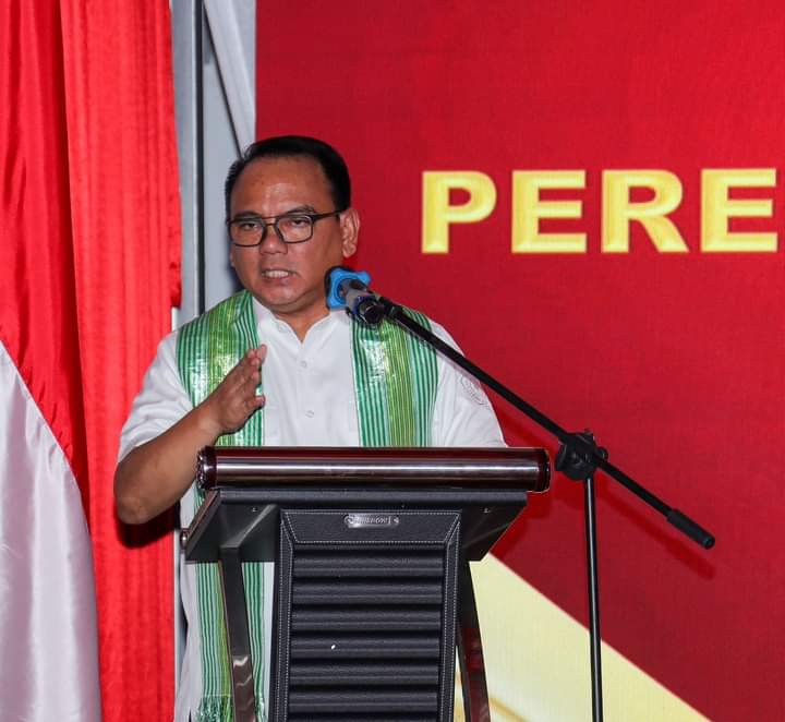 Penjabat (Pj) Gubernur Sulawesi Tenggara (Sultra), Andap Budhi Revianto, saat membawakan sambutan.