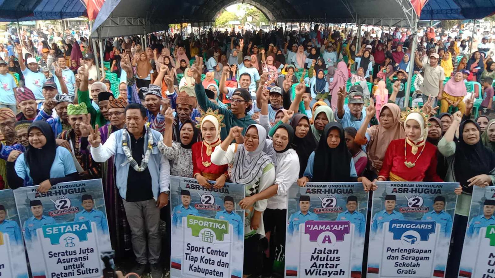 “APBD Sultra ini kan Rp 5,3 Triliun, lalu belanja pegawai mencapai 1,9 Triliun. Berarti masih ada Rp 3,4 Triliun. Jadi, wilayah kepulauan mendapat Rp 1 Triliun dan daratan Rp 2,4 Triliun,” beber Hugua, sontak mendapat aplaus sekitar 2.000 simpatisan dan relawan.
