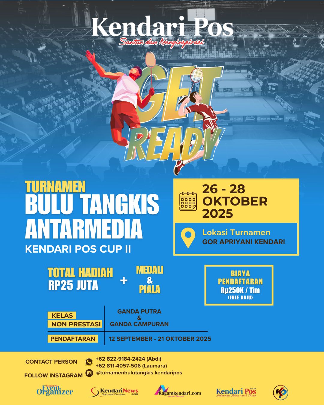 KORANHeadline.com, KENDARI – Komitmen memajukan olahraga bulutangkis di Sulawesi Tenggara (Sultra) kembali ditunjukkan oleh PT. Tiara Abadi Sentosa (TAS). Perusahaan ini secara resmi menyatakan dukungannya terhadap Turnamen Bulutangkis Antar Media Kendari Pos Cup II, yang akan digelar pada 26-28 Oktober 2025.