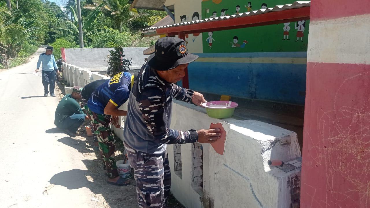 “Prajurit TNI AL Pos Baubau selama beberapa hari kedepan akan melaksanakan perbaikan fasilitas sekolah di antaranya perbaikan pagar dan gapura serta beberapa fasilitas lainnya di SD Negeri 14 Buton dan SD Negeri 54 Buton yang dimulai hari ini serta esok dengan tema Jumat Bersih bersama para guru dan siswa melaksanakan kegiatan Pembersihan Lingkungan Sekolah dan Bakti Sosial dengan berbagi sembako kepada masyarakat yang kurang mampu di wilayah pesisir, ” terangnya kepada media.