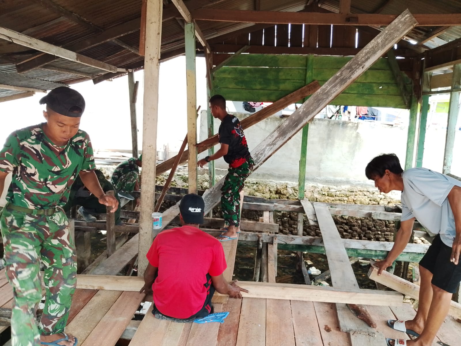 Melalui semangat gotong royong yang tinggi, pengerjaan dilakukan secara mendetail mulai dari perbaikan struktur bangunan hingga penyelesaian akhir.