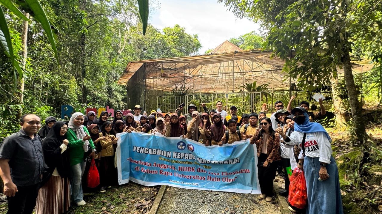 Kepala UPA Kebun Ilmu Hayati/Kebun Raya UHO, Prof. Dr. Faisal Danu Tuheteru, S.Hut., M.Si merasa senang Kebun Raya UHO bisa dijadikan tempat belajar para siswa Sekolah Dasar.