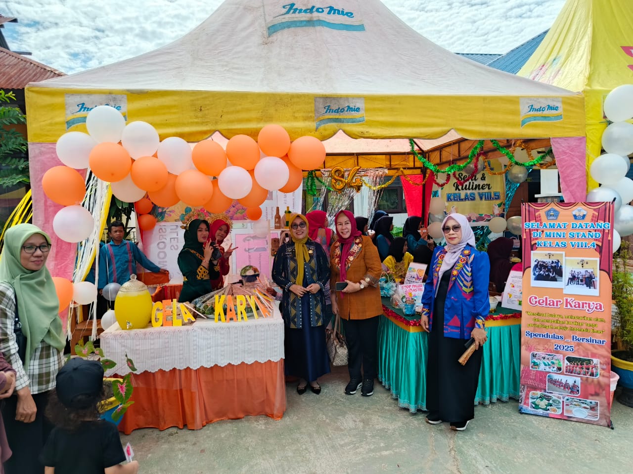 “Untuk kuliner yang disajikan merupakan gabungan mata pelajaran muatan lokal, untuk kelas 7 pengolahan makanan sayuran dan buah. Kelas 8 pengolahan sajian kacang-kacangan dan kelas 9 pengolahan hasil pertenakan dan pertanian,” tambah Ummi Salmah.