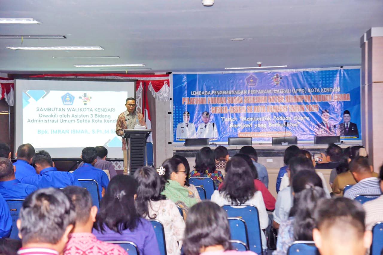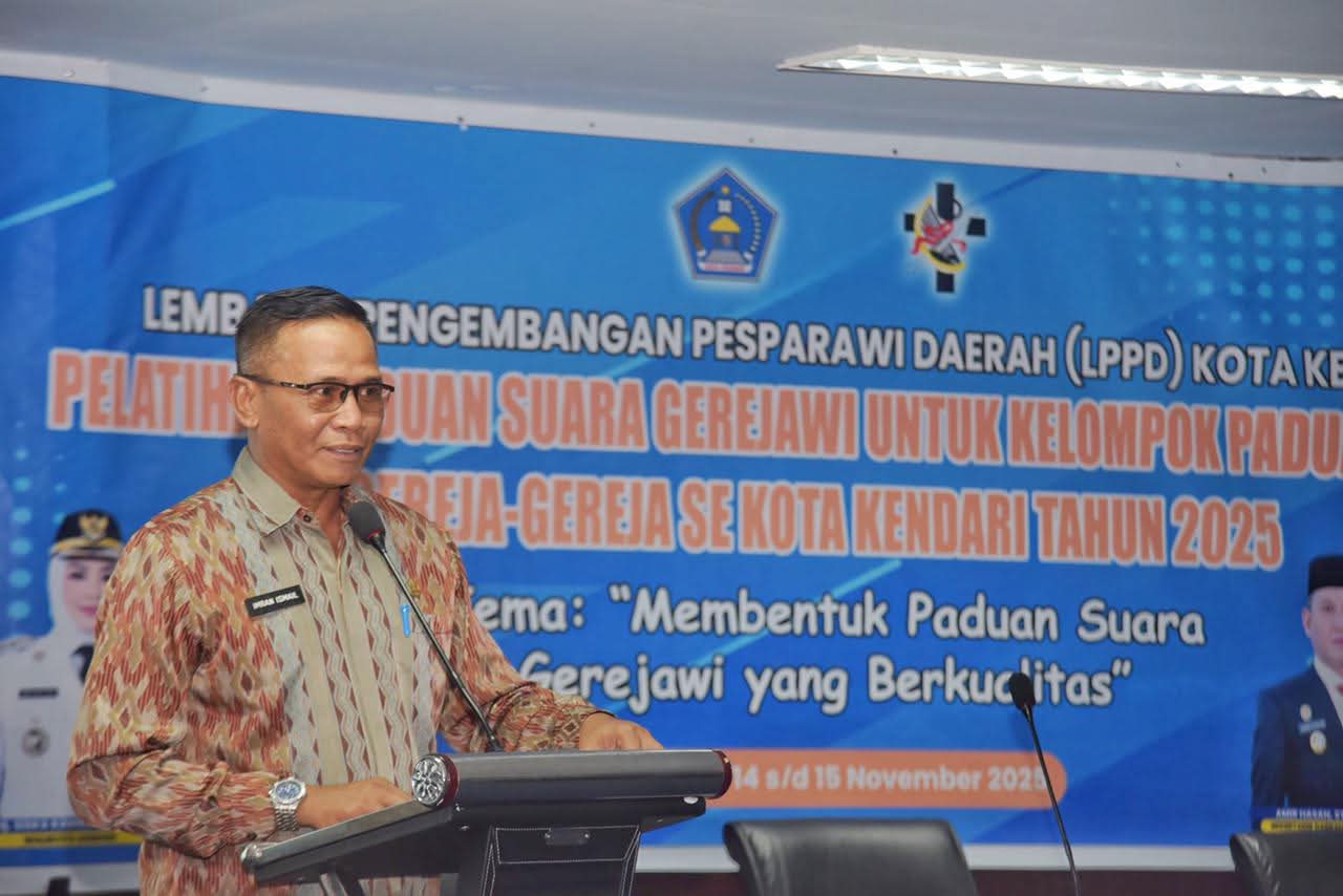 KORANHeadline.com, KENDARI — Asisten Administrasi Umum (Asisten III) Setda Kota Kendari, Imran Ismail, S.Pt., M.Si., membuka secara resmi Pelatihan Paduan Suara Gerejawi untuk Kelompok Paduan Suara Gereja-Gereja Kota Kendari Tahun 2025 yang diselenggarakan oleh Lembaga Pengembangan Pesparawi Daerah (LPPD) Kota Kendari di Aula Perpustakaan Digital Sultra, Jumat (14/11) kemarin.